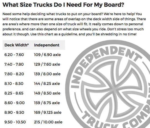 Independent Standard 139 = 8" axle width / 55mm height